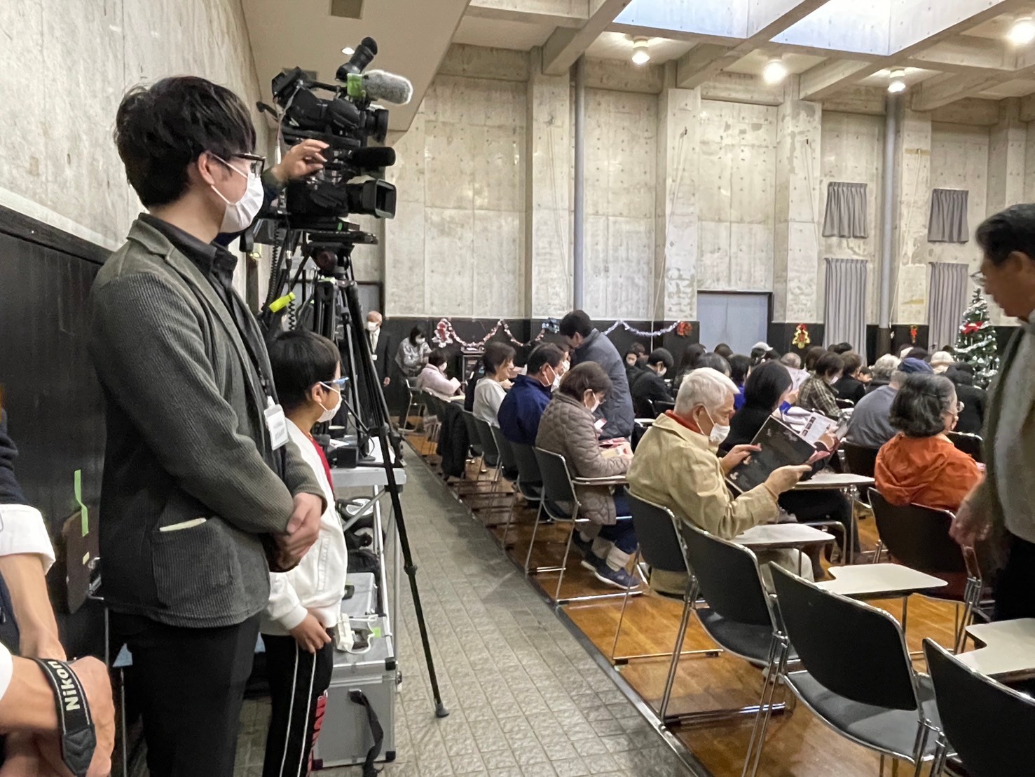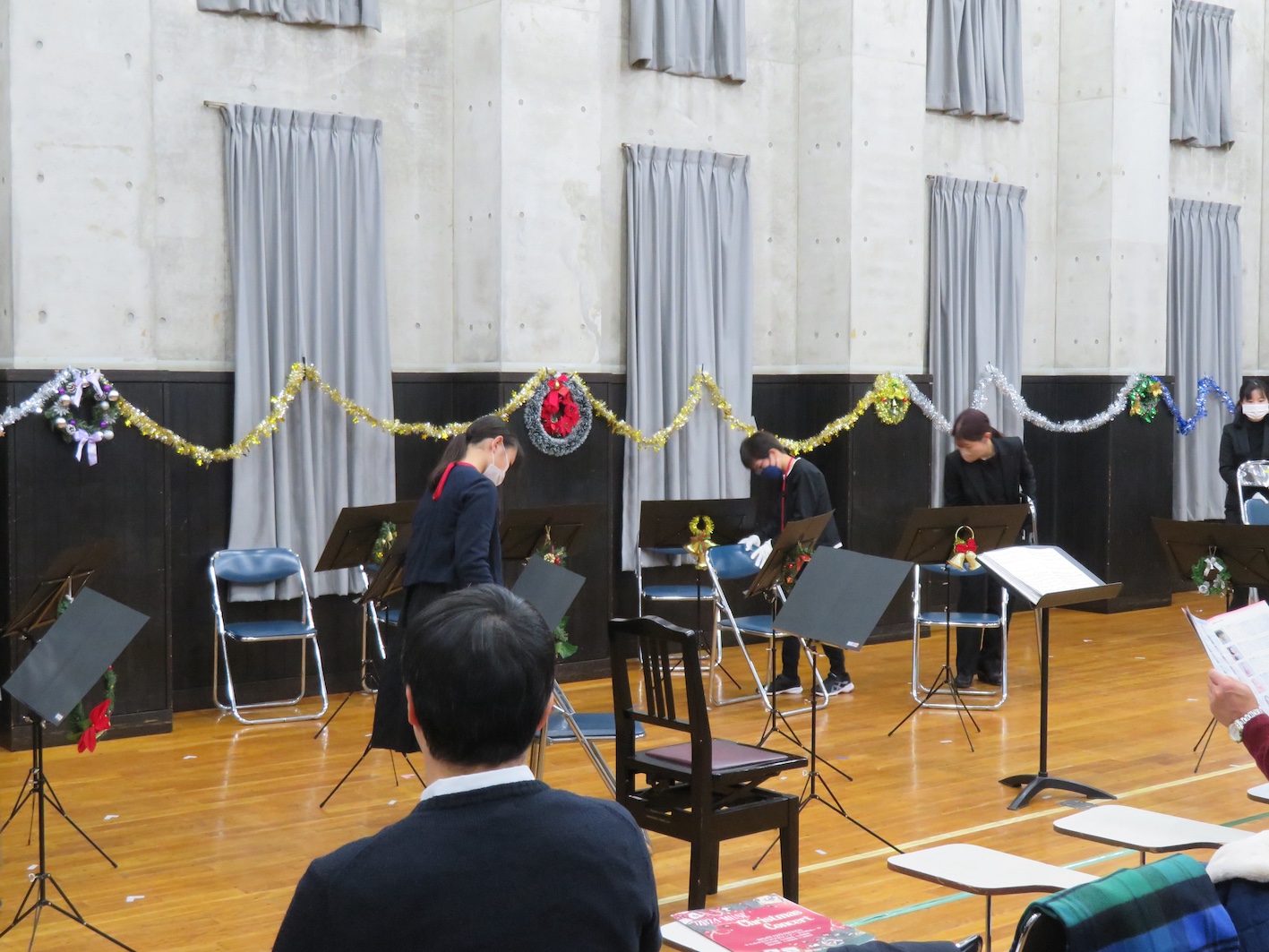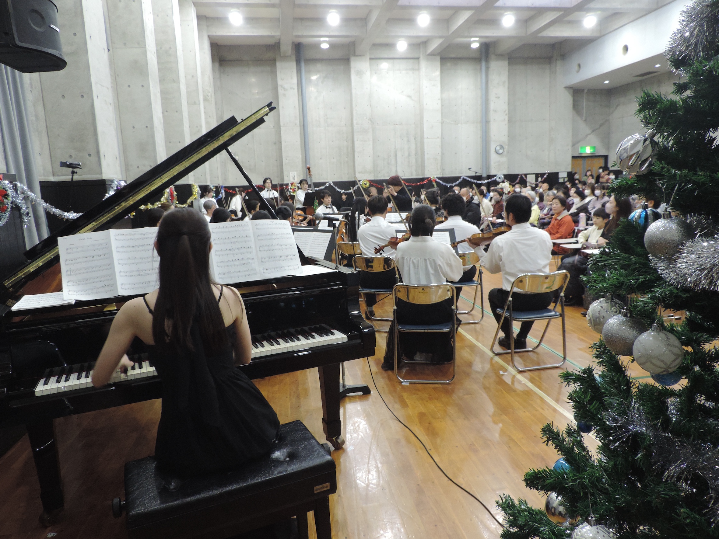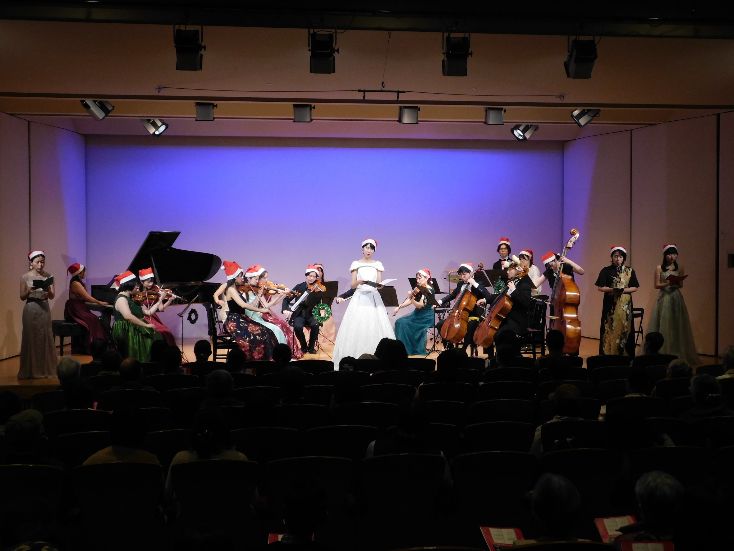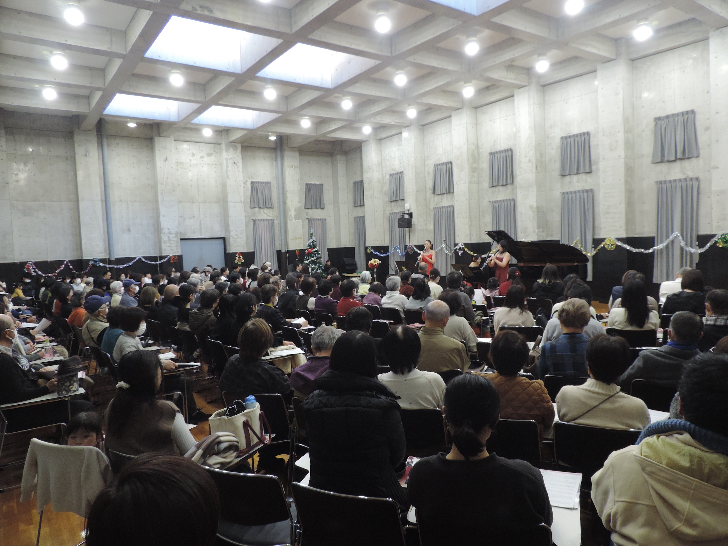 2時30分 昼の部開場、3時チャイムのメロディーで始まり、客席の舞台左右及び客席後方から奏者が入場。ちょっと早めのクリスマスコンサート開演。