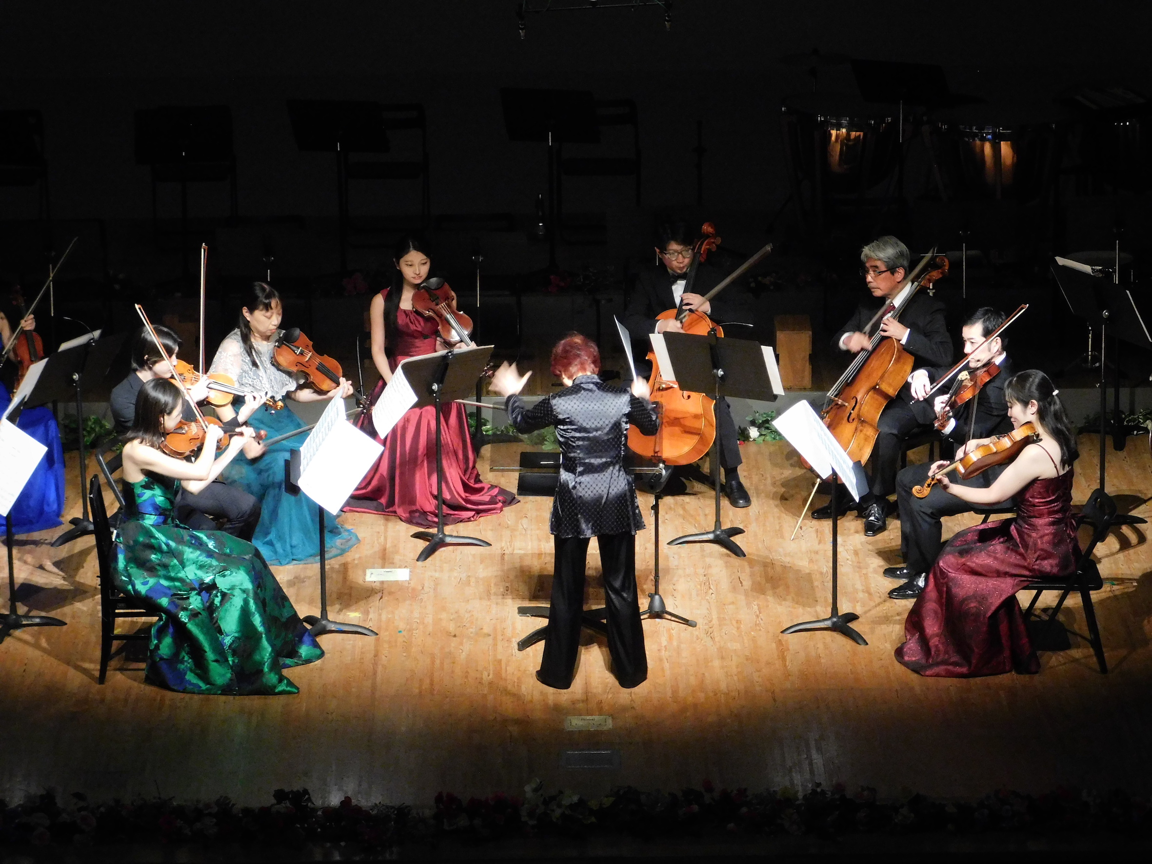換気をしながらの練習風景です。指揮者の深谷裕子先生と、オケのメンバーが丁寧に音楽作りをしています。本番まであと2ヶ月、素敵な音楽をお届けするために、頑張っています!