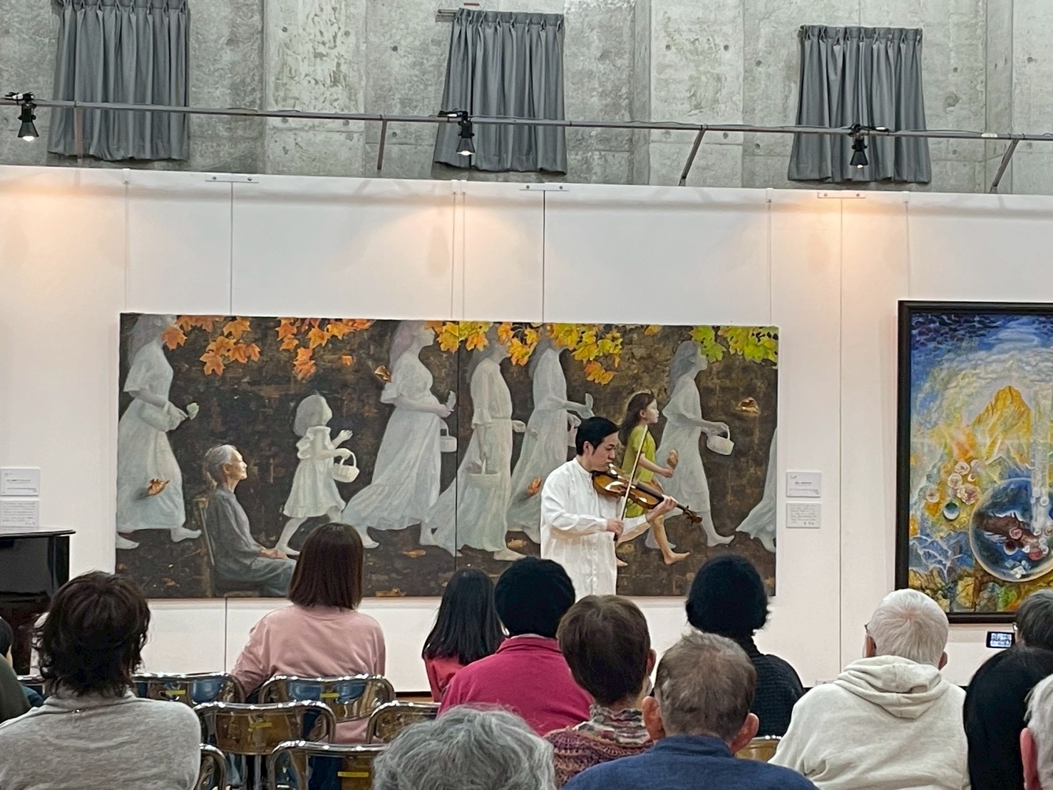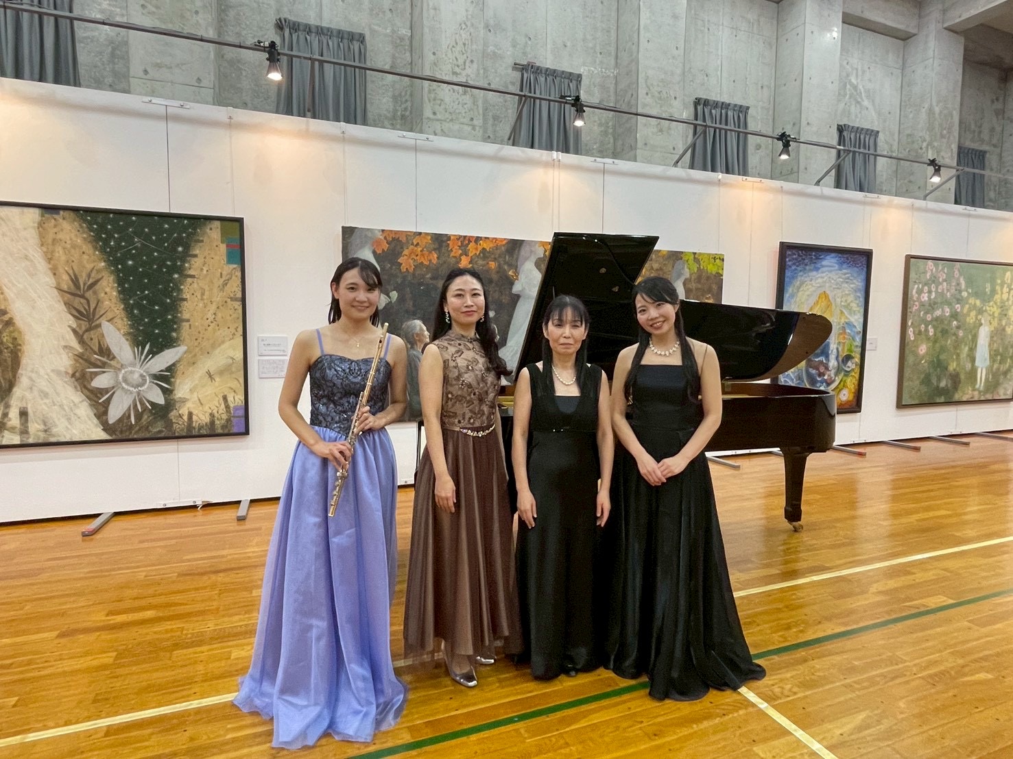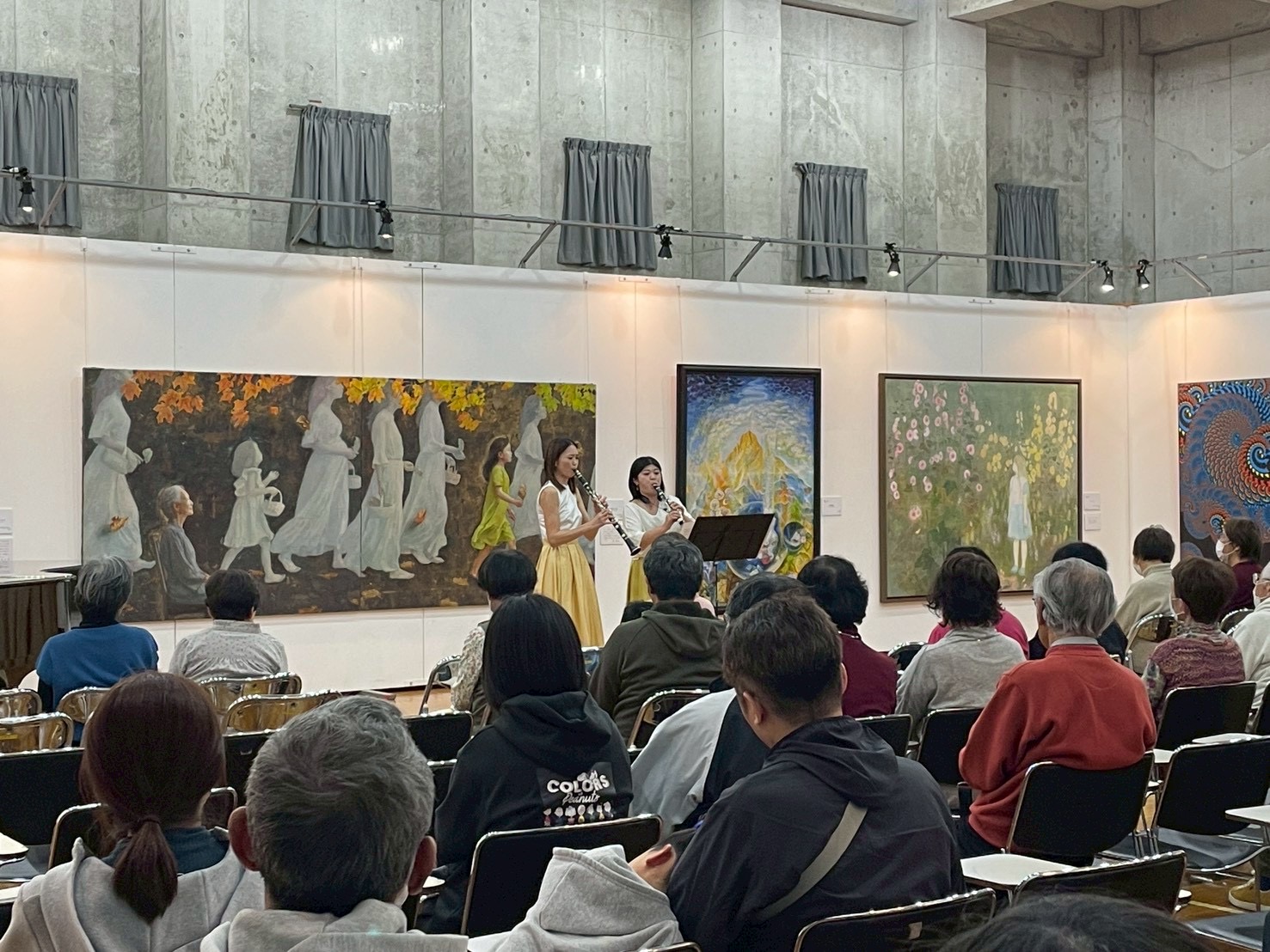 22日にはヴァイオリンとクラリネット、バスクラリネット、23日にはピアノとフルート、ソプラノによるトリオが演奏しました。22日は様々なジャンルの音楽を多彩な響きで演奏し、息の合ったアンサンブルでお客様を魅了しました。23日はあたたかい音色、歌声が会場を包み、曲によって立ち位置を変え、それぞれ曲に合った絵画の前で演奏する演出も行いました。美術と音楽のコラボレーションをお楽しみいただきました。