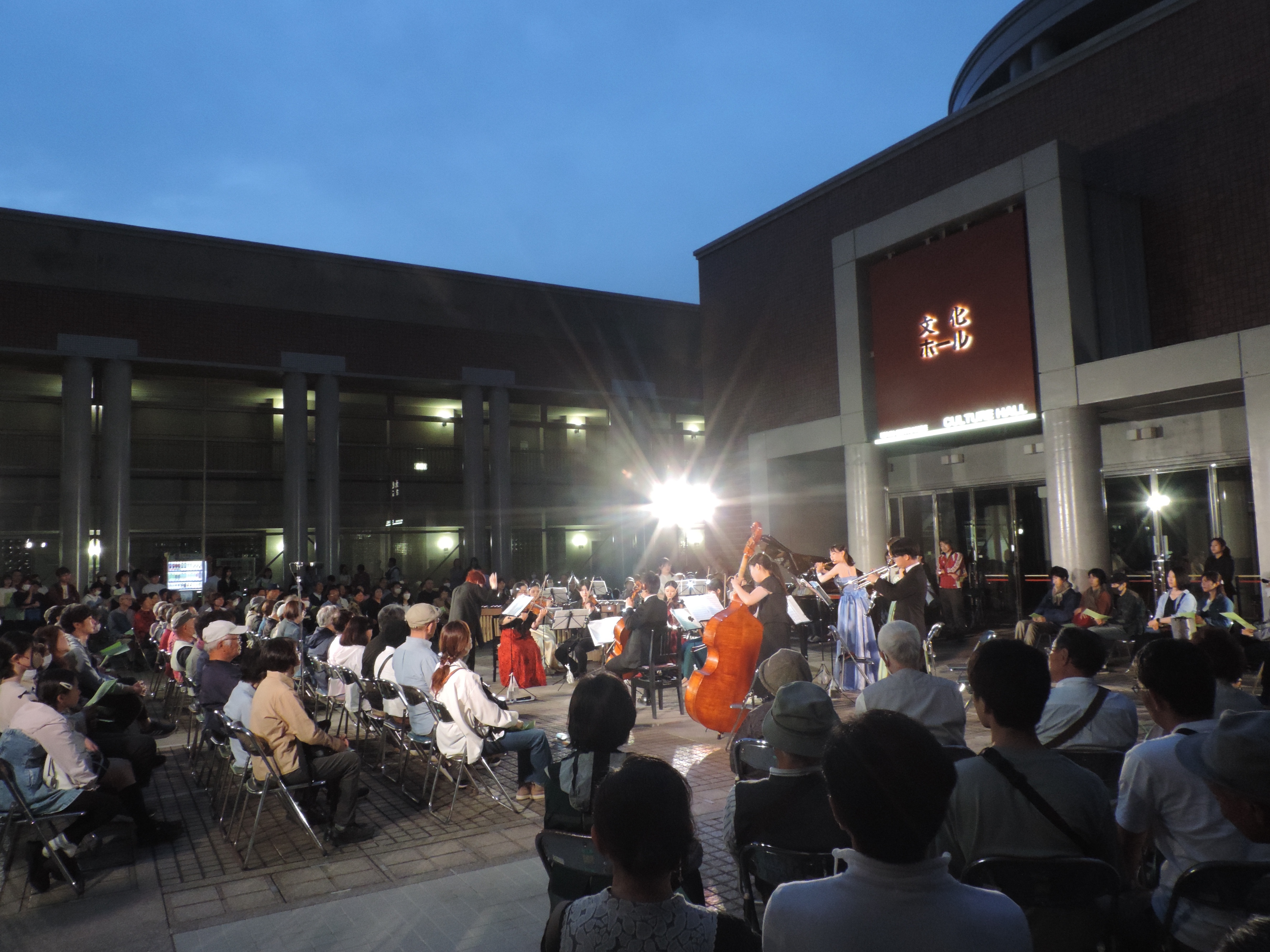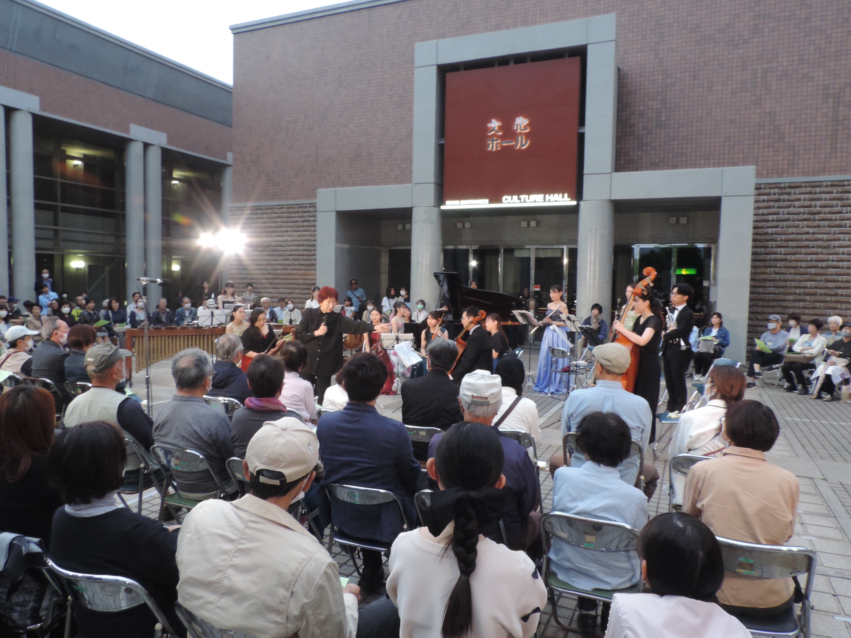 万全の感染防止対策と綿密な打ち合わせを行い、お客様により安全にお聴きいただける場を提供できたことは、今後のコンサート開催への大きな足掛かりとなりました。また、生涯学習センター中庭のスペースがコンサートに適していることも実証され、これからの活動の選択肢も増えたように思います。